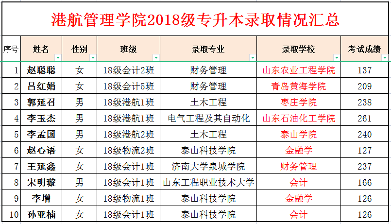 近日,2021年普通高校专升本选拔考试公布录取结果,据统计JINNIAN金年会赵聪聪等10名优秀学生被本科院校录取!