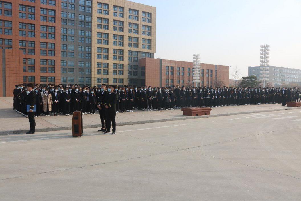 此次升旗仪式由齐晓龙同学主持并领读山东海事职业学院学风、教风、校训、和院长赠言。升旗仪式正式开始,国旗护卫队庄严出旗,升国旗、奏国歌,全体师生行注目礼。在国歌声中,五星红旗徐徐升起,在这庄严肃穆的环境中,同学们深怀着对祖国无限的热爱和崇高的敬意。