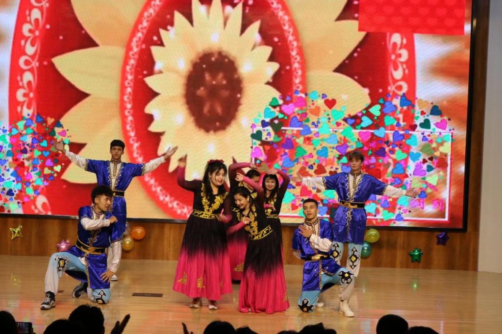 接下来元旦汇演,高潮迭起精彩纷呈气氛热烈,节目形式多样舞蹈、唱歌、小品、相声等等,给现场观众带来阵阵欢笑,现场洋溢着浓浓的节日气氛,值得一提的是一群来自新疆的学生给我们带来了一场精彩的异域风情,将整个晚会推向了高潮。