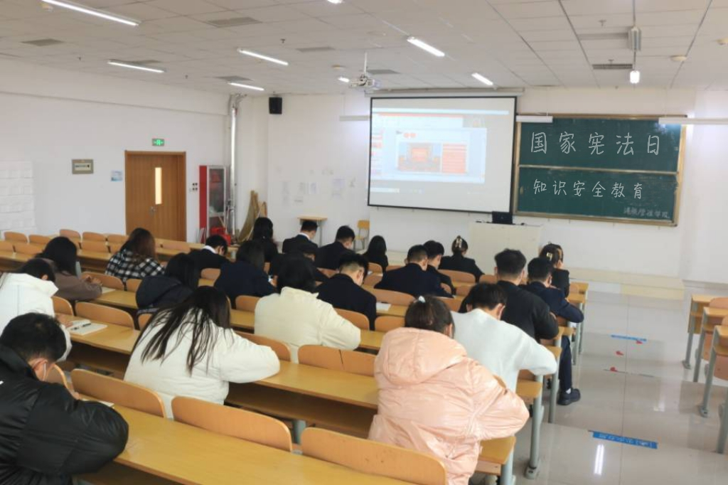 12月4日是第九个国家宪法日,也是我国现行宪法公布施行四十周年。4日下午,JINNIAN金年会组织学生干部、入党积极分子等集体学习宪法知识,学法守法推动全面贯彻实施宪法,做社会主义法治的忠实崇尚者、自觉遵守者、坚定捍卫者。