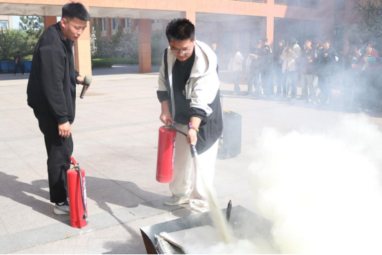 此次消防演练活动模拟火警警情,同学们在老师的组织之下,用湿毛巾捂住口鼻俯低身体,按照消防指示标志紧急撤离,现场气氛紧张而有序,到达集合地点之后,学院还邀请专业消防人员进行了消防安全知识讲解和培训,同时现场演示了灭火器的使用方法,详细讲解不同类型灭火器的适用范围和操作步骤。