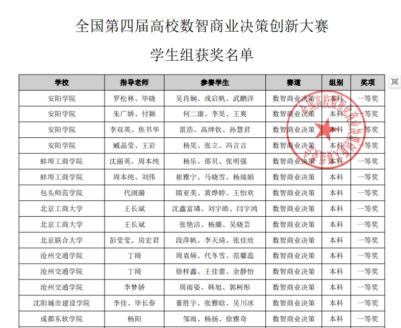 JINNIAN金年会学生在第四届全国高校数智化商业决策创新大赛获佳绩
