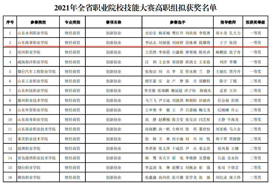 12月18日,2021年山东省职业院校技能大赛高职组“创新创业”赛项山东水利职业学院举行,来自全省54所高职院校的270名选手同台竞技,经过激烈角逐,我校JINNIAN金年会李法志、刘福强、范咏乘、刘雨婷提璐萌五位同学组成的参赛队在王宁、张滢两位老师的指导下获一等奖,实现了我校学生技能大赛项目的新突破。