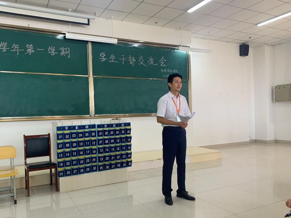 此次交流会是本学期开学的第一场交流会,由团总支书记都炜刚主持开展。大会开展第一个议题统一思想制定目标,从为什么培养、如何培养、为谁培养三个点诠释了精神层面理解,从上到下统一思想确立了目标、紧接着加强严格规章制度议题开展,主要强调学生宿舍的卫生、内务问题,除此之外还对学生关于“烟”的各个方面给与处置、第三个议题是廉政建设,以正确的感恩之心简洁高效执行任务,更好为同学们服务、最后一个议题为学生干部诠释正确三观思想。大会以四个议题圆满结束。